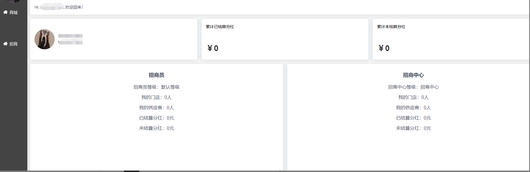 独立后台可查看我的等级,我的门店,我的供应商,已结算和未结算分红