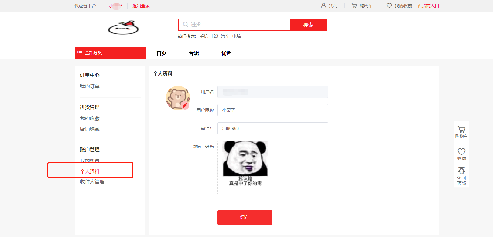 2)在这里可以看到收藏商品,收藏店铺的数量,以及余额和一些订单信息。
