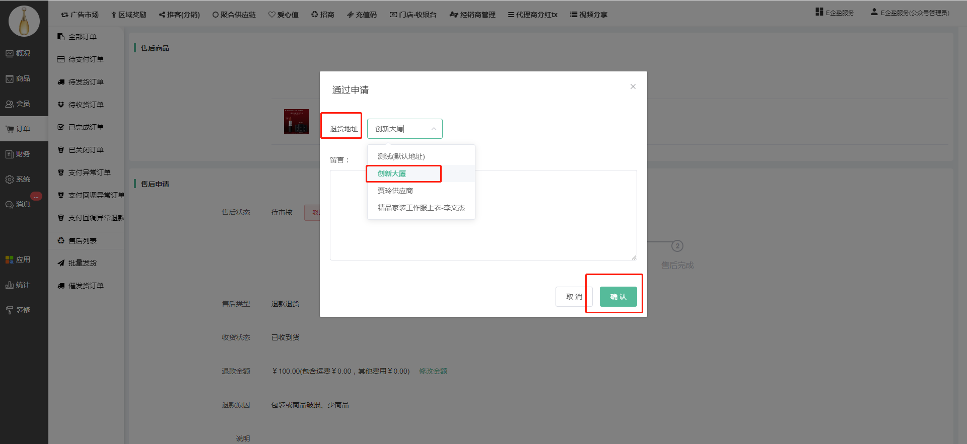 后台--订单--售后列表--找到需要审核的订单(该笔订单退款退货)--点击查看详情,如下图所示: