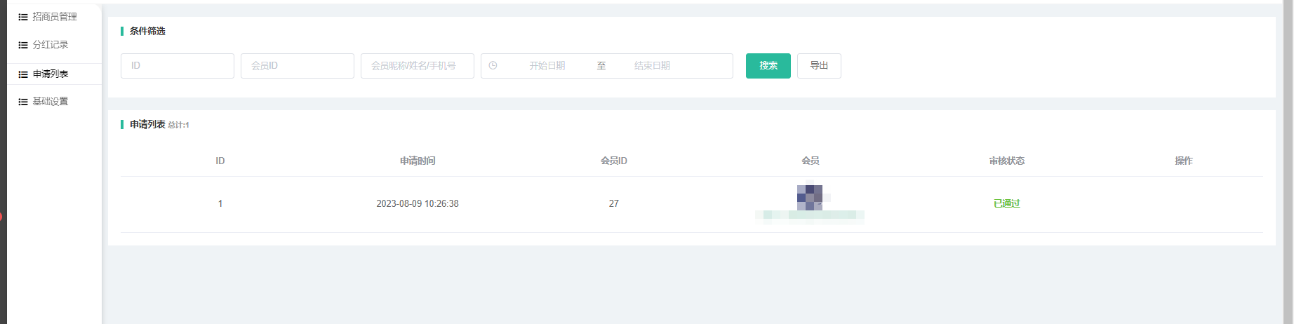 1) 前端有会员申请成为招商员,此处就会有一条记录,可选择审核通过或者驳回