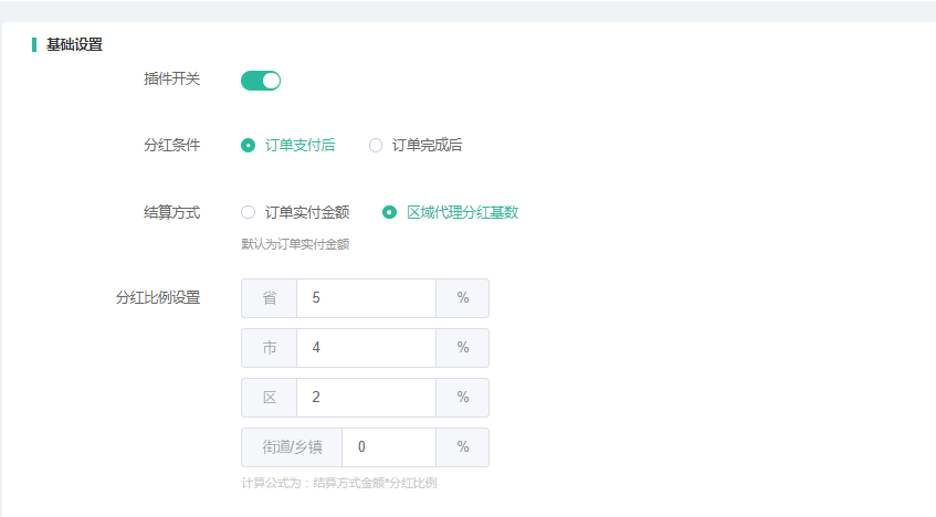 4、奖励节点是可选择支付后还是完成后,比例按照奖励时的设置,非下单时