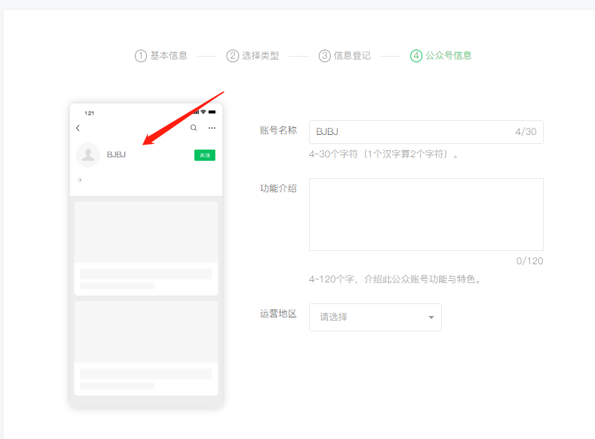 6.点击“下一步”,确认填写信息,在此处可以更改刚才的公众号名称,确认后需要等下次年审的时候再更改