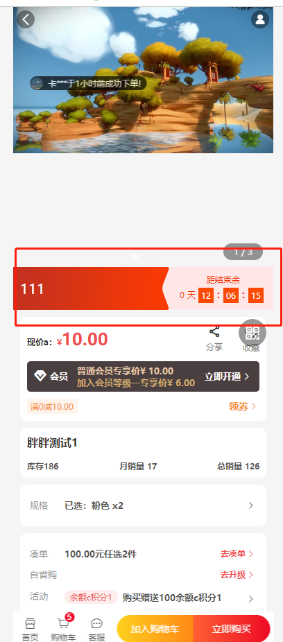 会员等级购买权限:可以指定特定等级的会员才能购买该商品,默认为全部会员都可购买。效果如下