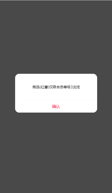 会员等级浏览权限:可以指定特定等级的会员才能浏览商品,非指定等级的会员可以搜索查看,但进入商品详情页提示无权限浏览,默认为全部会员都可浏览。效果如下: