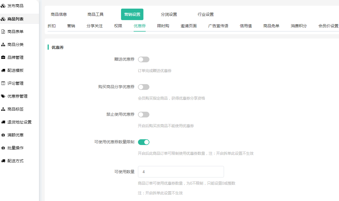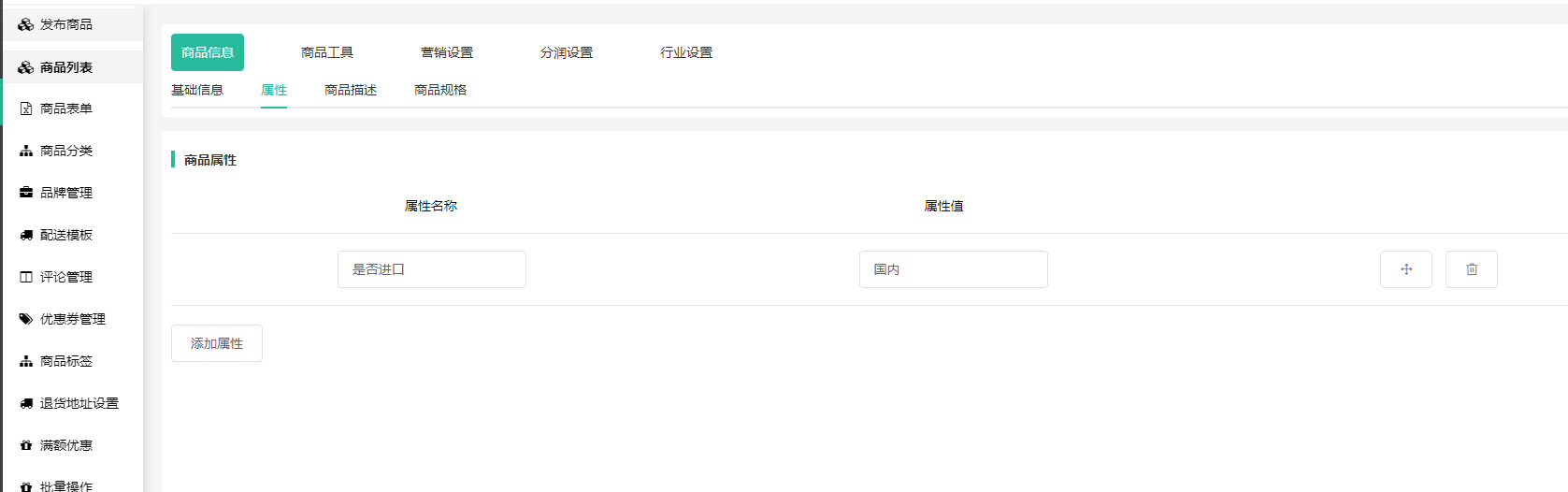分润设置和行业设置,根据商城的模式可针对商品单独设置。