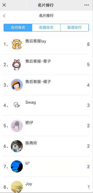8,访客足迹:用户通过你的名片访问商品的足迹