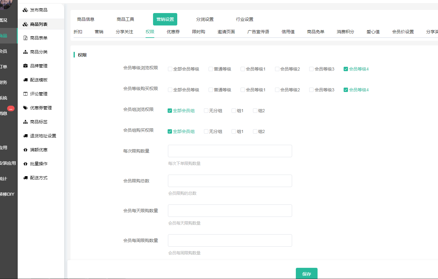 权限(会员等级浏览权限/购买权限、会员组浏览权限/购买权限)