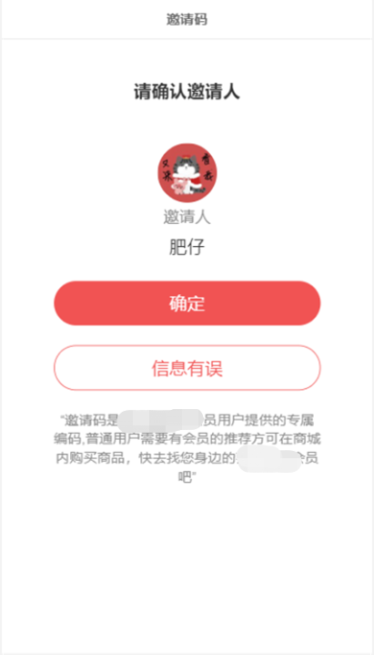 用户在将商品下单/加入购物车时跳转到邀请页面,确认邀请信息是否准确;